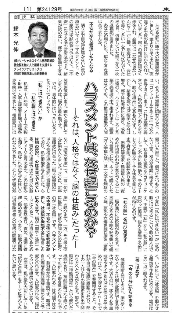第2回コラム「ハラスメントはなぜ起こるのか?」